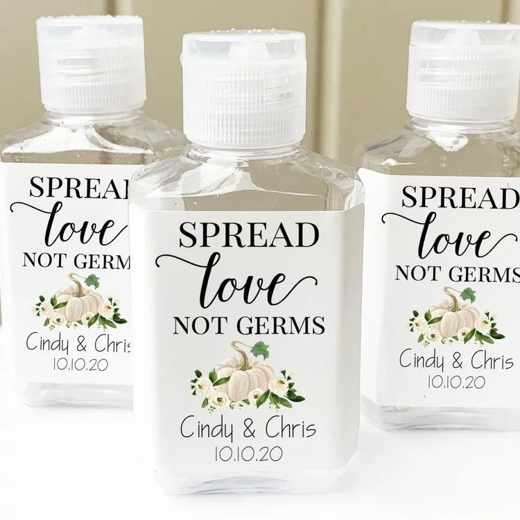 Hand sanitizers should already be provided by your venue, (hopefully). So this department should be covered! Though, that doesn’t mean you can’t add more to the bunch! Instead of having just hand sanitizer stands around the reception area, you can offer small gifts to your guests when they enter the reception area. Plus, you can make them look really cute with some customized labels!