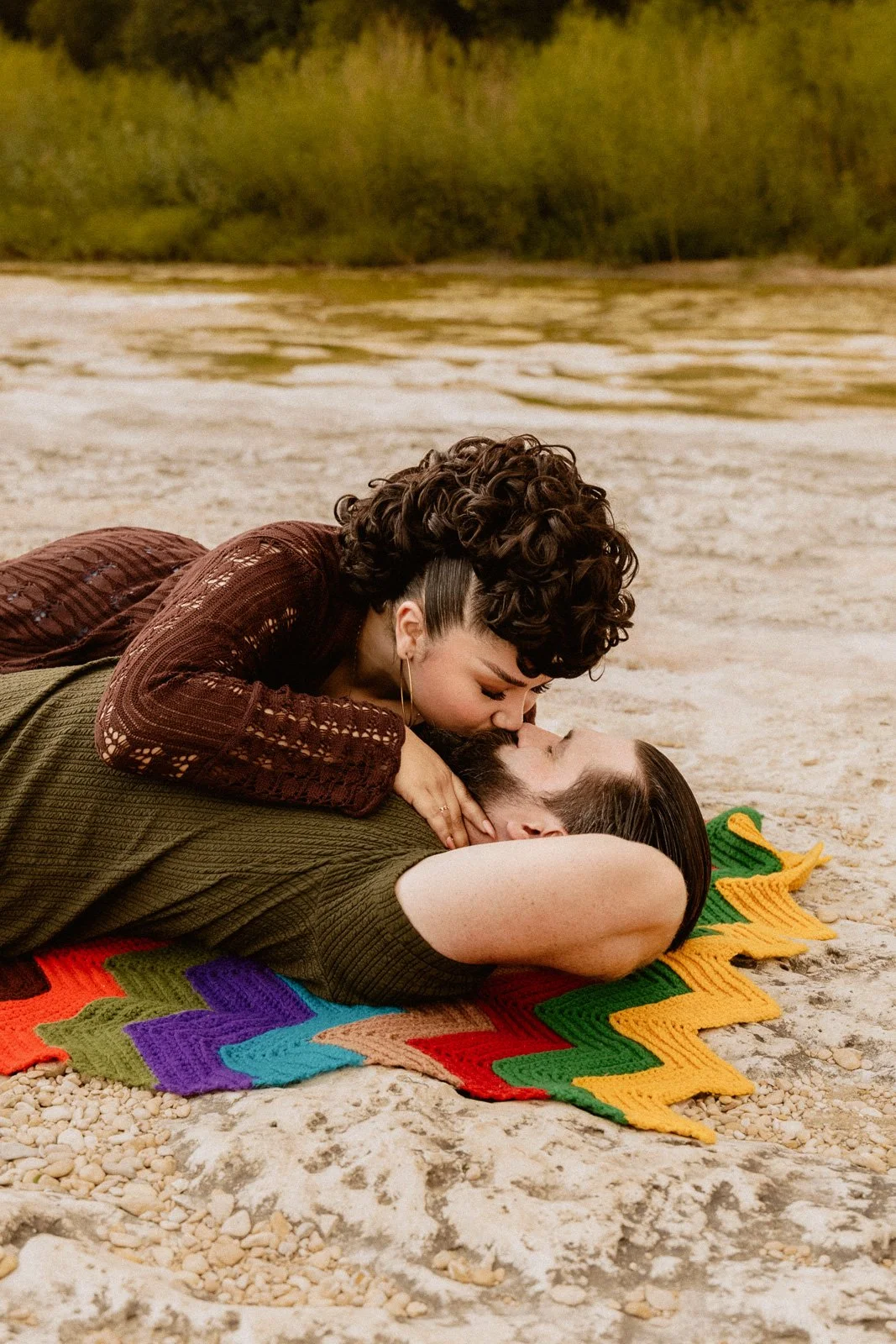 Then they stepped into the water, and the session transformed into something raw, playful, and beautifully alive. Shoes abandoned, clothes soaked, laughter echoing off the stone — the rest of the evening unfolded with carefree joy and unfiltered connection. It wasn’t just an engagement session; it was an experience of movement, trust, and shared adventure. A reminder that their love isn’t just something they hold — it’s something they live.